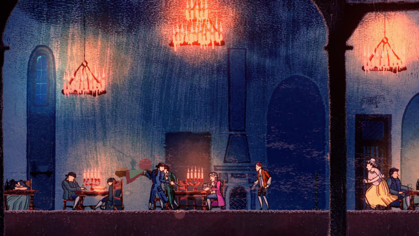 是有那么些类似,不过没有那么玄幻。《千爵史诗》对于剧情脉络的呈现,要显得更贴近现实——18世纪的法国,贵族与平民阶级皆沉迷赌博,而主角作为一名在酒馆打杂的毛头小子,于一场赌局中被迫背上了谋杀的诬告,并失去了自己的栖身之所。