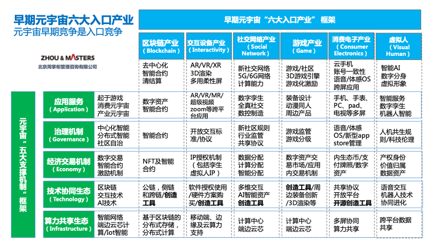 在元宇宙早期更多是从入口角度展开的战略布局竞赛,不同公司根据自身的能力特点选择差异化的入口,这应该是一个百花齐放的阶段,不过这个阶段大概率会形成共识性的入口方式。换句话说,不同公司的元宇宙商业模式都将在早期阶段确立属于自己最合适的一个或几个入口,早期阶段也是入口选择阶段。
