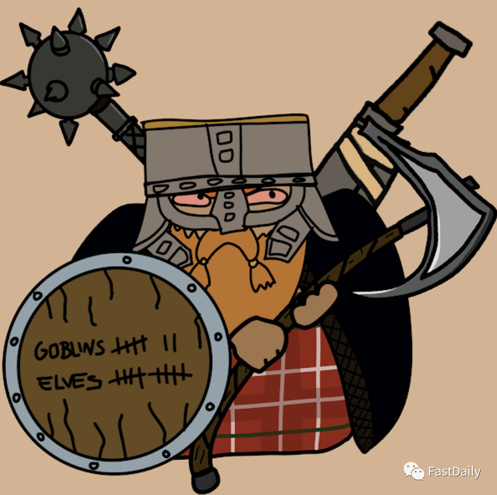 这些NFT形象看起来很傻,看起来就像南方公园的动画师决定根据《指环王》制作一集动画时随手乱画的东西,其元素配备了不同的锤子、马刀、剑、斧头和盾牌阵列。