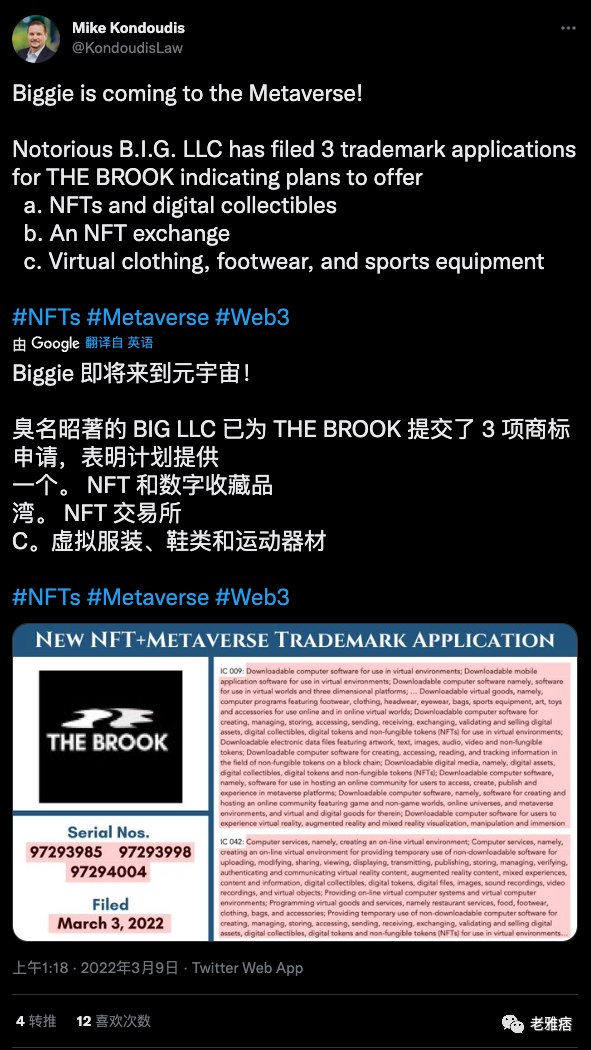 虽然Biggie于1997年去世,但Notorious B.I.G. LLC最近为 "The Brook "提交了三份商标申请,这个游戏化的元宇宙声称它将把用户带到90年代的布鲁克林街头,让他们沉浸在影响该艺术家生活和工作的嘻哈遗产和文化中。