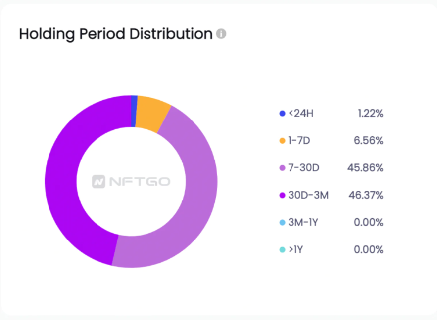 接下来,我们看看持有者的情况。Degen Toonz 拥有相当多的手钻拥有者,因为很多人买了之后就再也没有卖出去。![]()