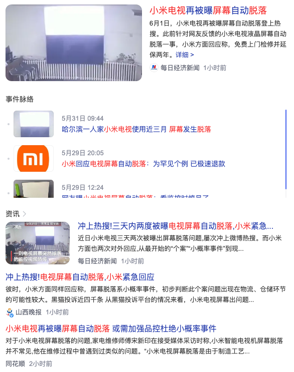 前段时间,小米电视三天两次发生屏幕开胶脱落的事件登上了热搜,并且引来了不少的关注。