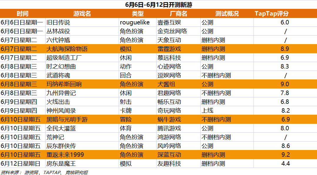 据游资网统计,下周开测新游的大厂有腾讯、雷霆、蜗牛等。