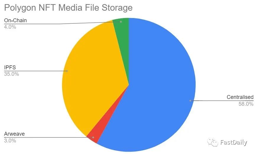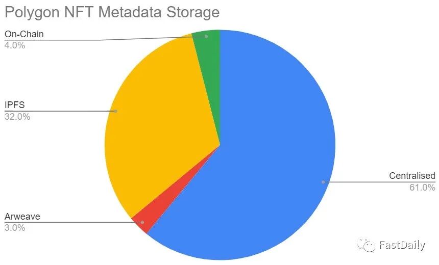 Polygon NFT生态系统有很高的集中化风险。61%的顶级交易项目依靠私人服务器进行元数据存储。
