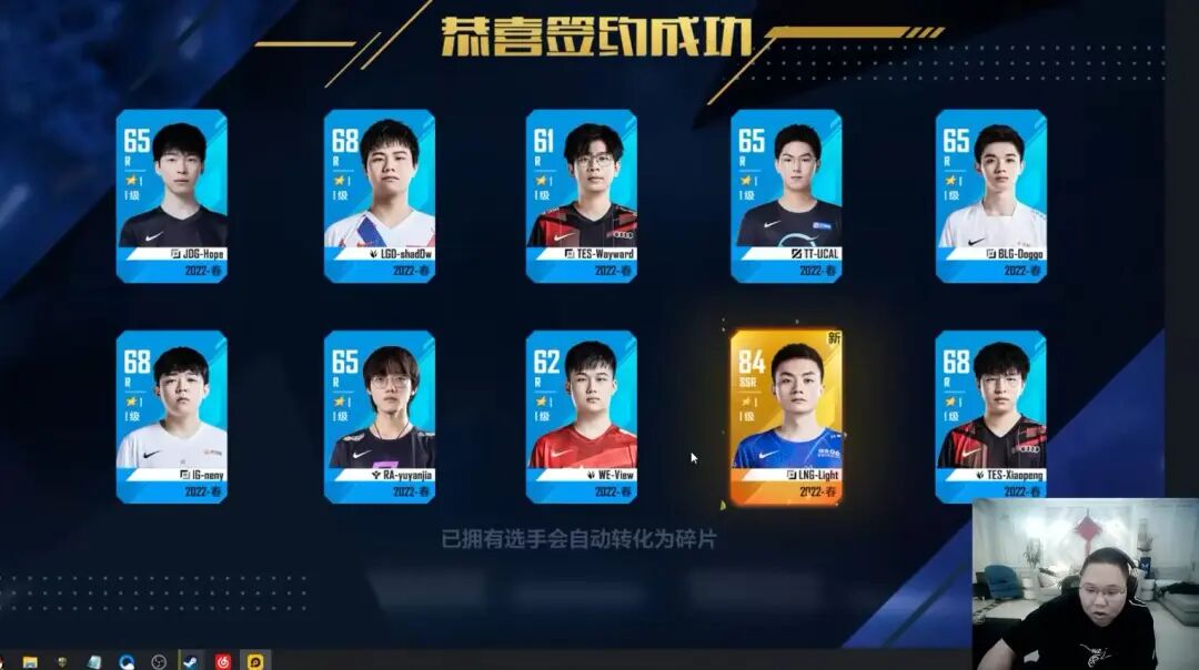 桃:《英雄联盟电竞经理》是一款基于真实赛事题材设计的游戏产品,游戏中选手的评级是基于该选手过往赛季的真实比赛数据来设计的,在刚刚过去的曙光测试版本中,2022春选手的定档依据是2021年夏季赛数据。不同时期的选手会有对应赛季的卡片,这些卡片也会基于选手在当年的真实表现来进行设计。