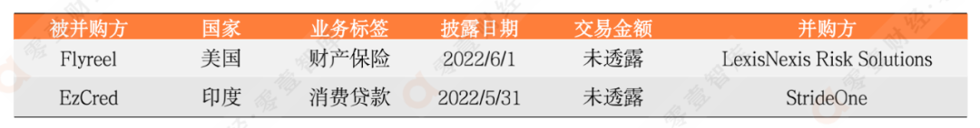 据零壹智库不完全统计,上周有2家金融科技公司被并购,均未透露交易金额。其中,AI保险服务商“Flyreel”被LexisNexis Risk Solutions收购。