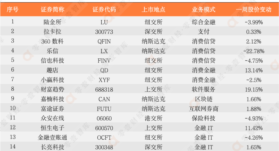 三、21家金融科技公司股价上涨, 财富趋势上涨19.15%