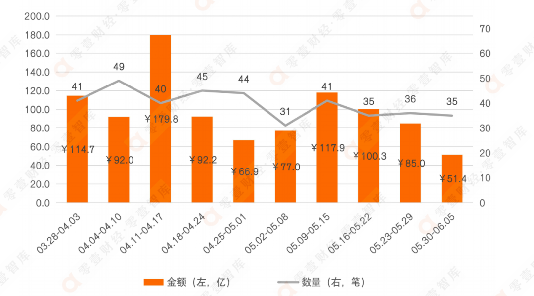 据零壹智库不完全统计,上周(2022年5月30日-2022年6月5日)全球范围内与金融科技相关的股权融资事件为35笔,环比减少2.8%;公开披露的融资总额约51.4亿元,环比减少39.5%。