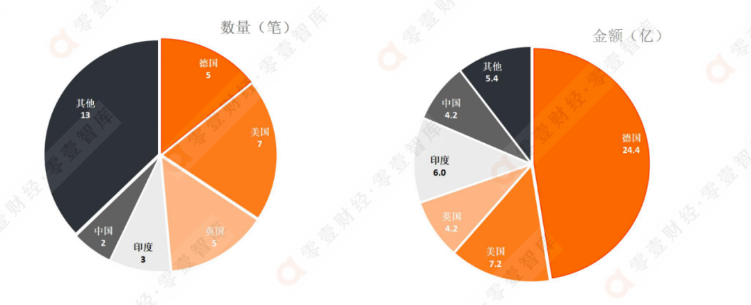 (三)美国7个项目获投,德国融资总额达24.4亿元