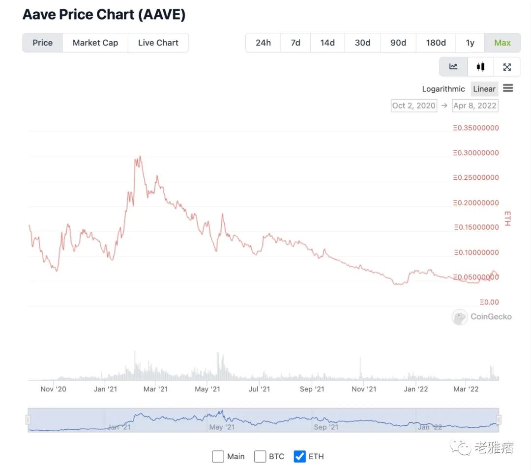 例如,与ETH相比,AAVE有一个较差的走势图。