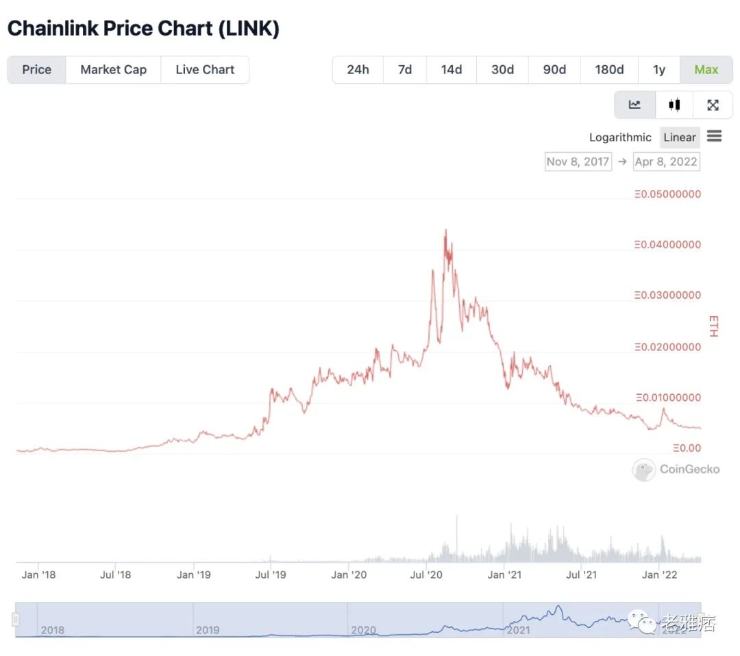 如果你在2019年7月后买入LINK并持有,截止2022年1月份,兑换ETH的价值已经损失了50-90%,为什么会这样呢?