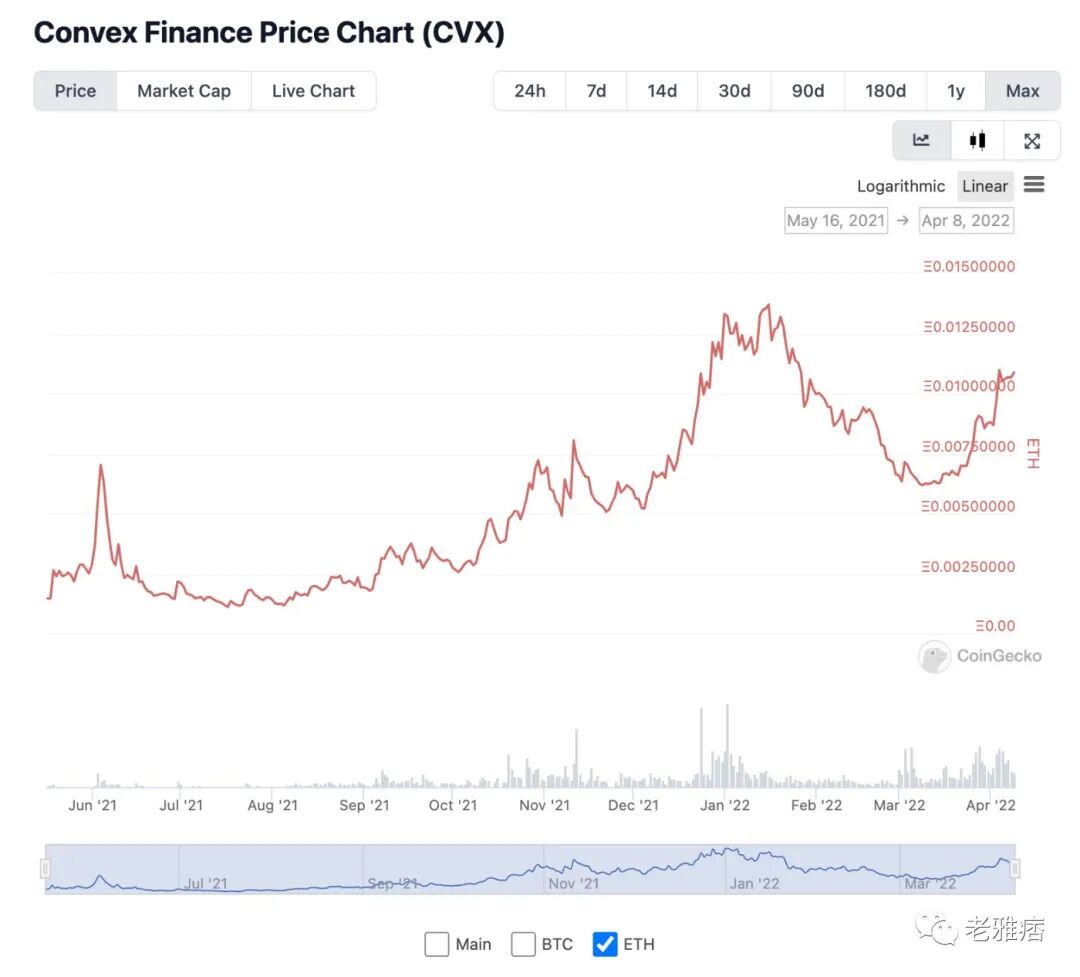 而如果你看一下Convex 对ETH的情况,它的表现要好得多。