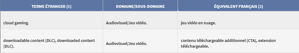 比方说DLC,我们熟知的“可下载内容”的缩写,在如今的法国官方口径中要改成CTA;英语中的“云游戏”(cloud gaming),需要规范成“云视频游戏”(jeu vidéo en nuage)。