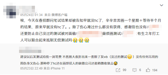 至于这个时间,不仅指做笔试的时间,还包括耗在与厂商心理博弈上的时间——不少人都抱怨,做完笔试后迟迟等不来厂商回复,“钓鱼”搞人心态。“公司都这样,钓鱼,都想要最好的候选人。”