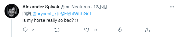被@到的模型师亚历山大无辜地回复道:“我设计的马真的那么糟糕吗?”但是他并没有表达自己的看法,也没回答自己在《Grit》引入NFT这件事上扮演什么角色。