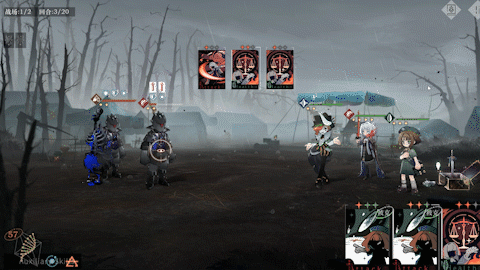 行动,每回合玩家最多有三次行动机会,也就是说理想状况下一回合最多可以使用三张技能卡。但是,前面提到的合成往往需要移动卡牌到相邻的位置实现,而这个移动行为也会被视为消耗一次行动次数。