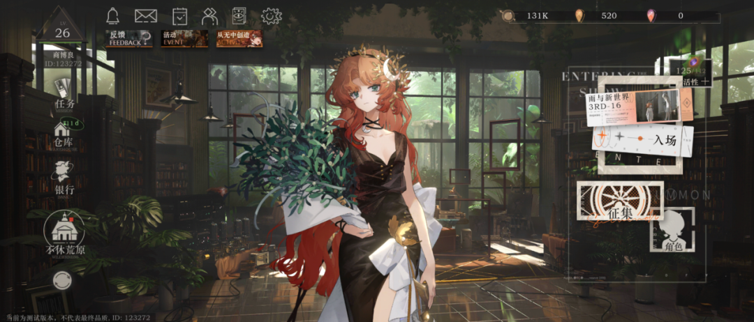 正式进入游戏后,映入眼帘的是几乎与背景融为一体的主界面。功能与系统入口分布在主界面左上右部分,约半个屏幕大小的位置留给了突出的看板娘,配合默认有着的静谧无声庄严感的背景,给人以轻松、午后悠闲的舒适感。