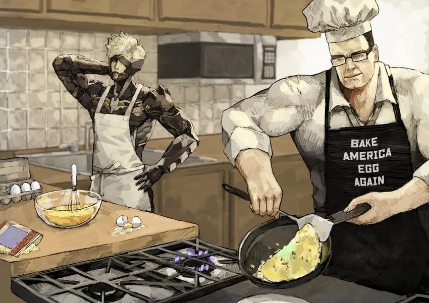 雷电与阿姆斯特朗合作摊鸡蛋的同人图
