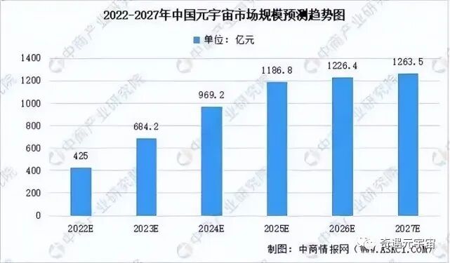 根据中商产业研究院发布的《中国元宇宙行业市场前景及投资机会研究报告》,“十四五”期间,要发展战略性新兴产业,国家层面重视人工智能、虚拟现实、移动互联网、物联网等产业发展,国家层面及各省市“十四五”规划纲要多次提到相关行业,促进了元宇宙相关产业的发展。政策支持下,中国元宇宙产业迎来发展新机遇,预计2027年元宇宙市场规模将达1263.5亿元。实际上,元宇宙产业已经引发了多地政府的关注。2022年以来,北京、上海、厦门等多地政府加紧布局元宇宙产业赛道,密集出台涉及元宇宙、虚拟现实(VR)的相关政策和规划文件。