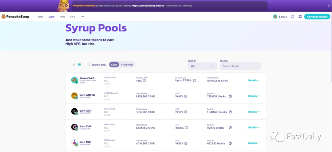 PancakeSwap拥有一个简单而愉快的用户界面,为用户提供了广泛的金融产品和功能。虽然该交易所最初是SushiSwap的一个分叉,但它已经扩展了其服务和功能,远远超出了SushiSwap目前为用户提供的服务。