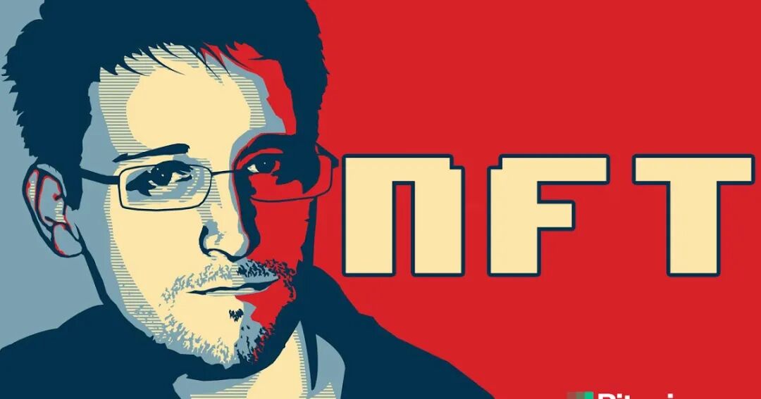 斯诺登的脸部剪影则出现在NFT的前景中,该作品最终成功筹集了500万美元,所得款项捐赠给了新闻自由基金会。