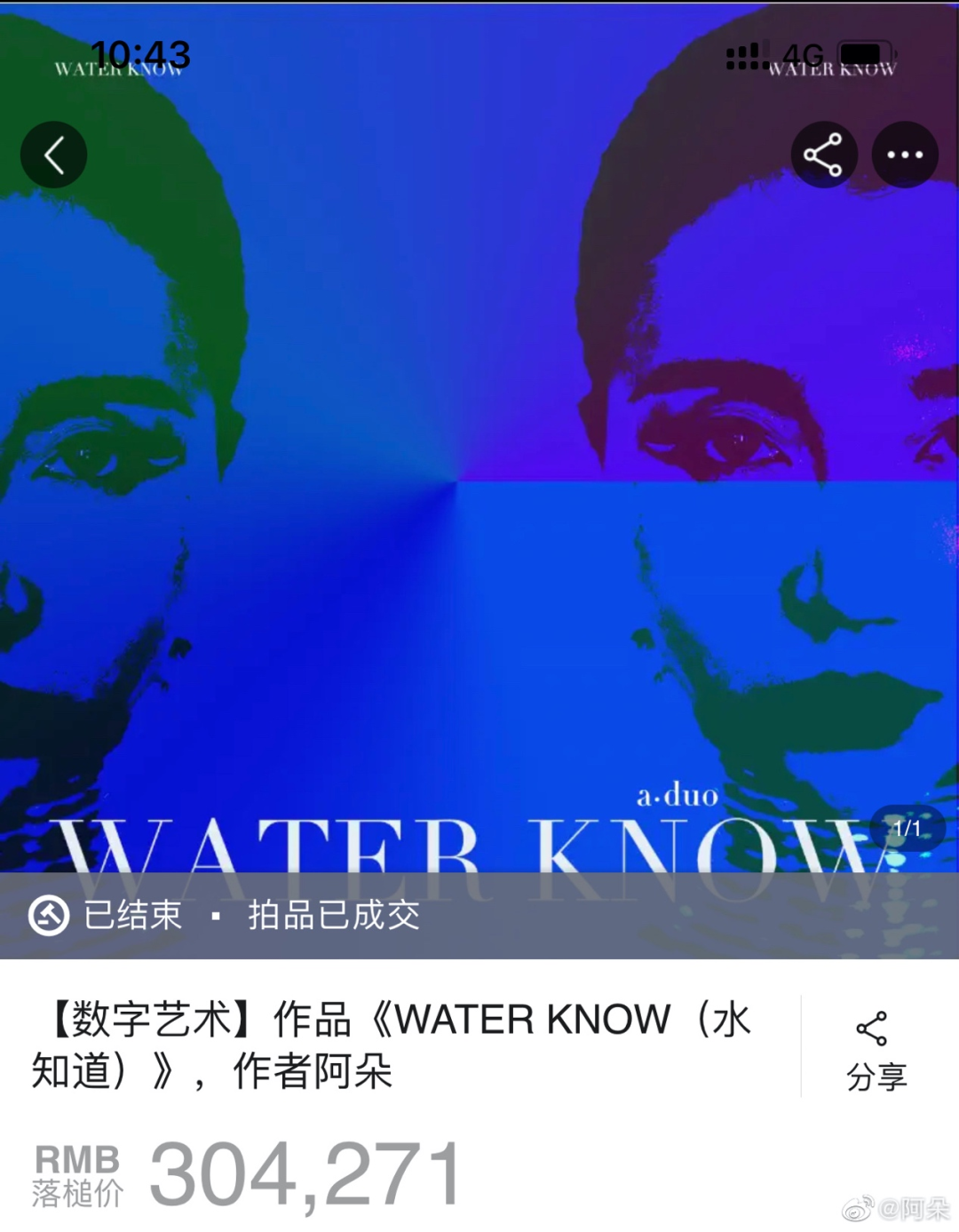 2021年5月,歌手阿朵发行国内首支NFT数字音乐作品《WATER KNOW》,采用NFT加密技术,并将封面和歌曲的署名权公益拍卖,成交价超过30万元。