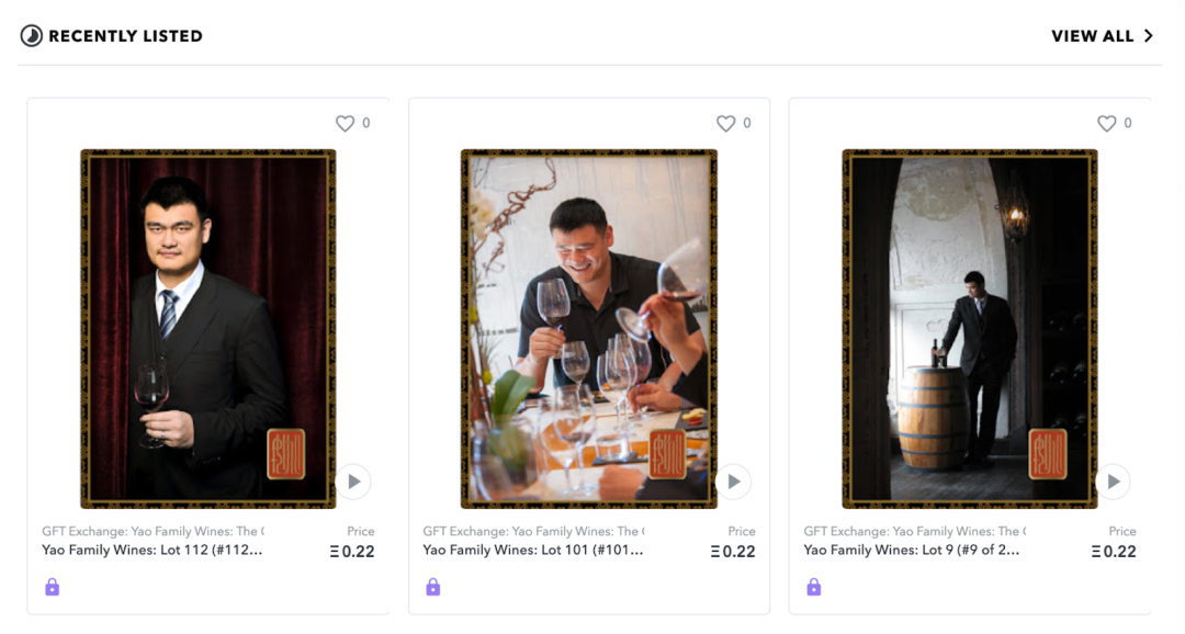 2022年6月,篮球巨星姚明名下葡萄酒庄园“YAO Family”推出全新葡萄酒品牌“THE CHOP”及限量版NFT收藏品,这是世界上首个与NFT数字收藏品搭配拍卖的葡萄酒酒庄。