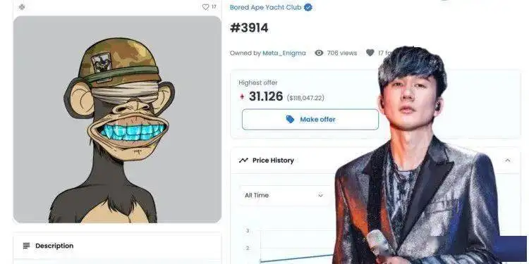 2022年3月20日,新加坡歌手林俊杰在社交媒体上展示了配有“无聊猿”BAYC #3914 的饰品(貌似钱包),并配文:拿到通往 Web 3 的新护照。