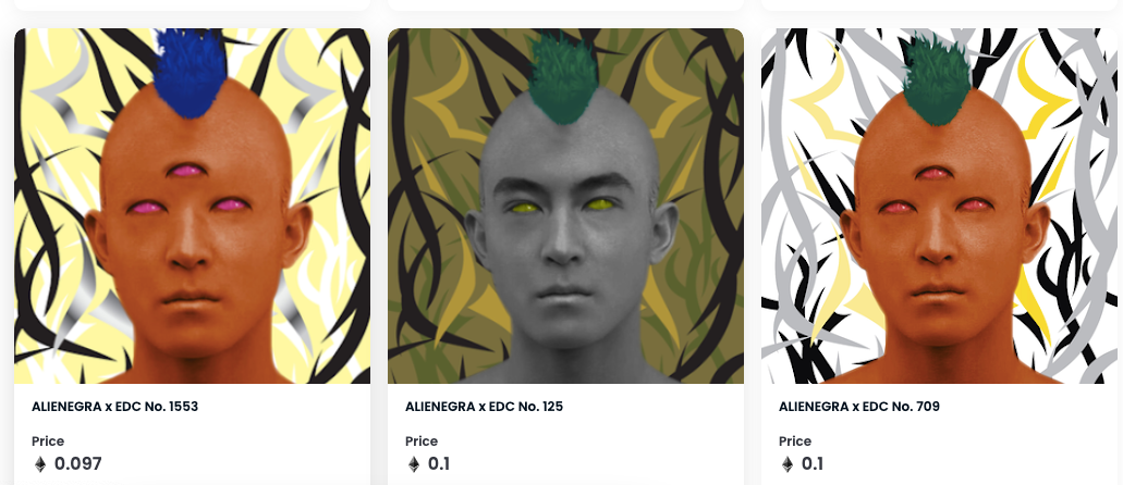 2022年2月,演员陈冠希名下潮牌CLOT发行了「ALIENEGRA x EDC」系列NFT,发行总量为2072枚,该系列NFT是以陈冠希为原型创作的「外星人」形象NFT。