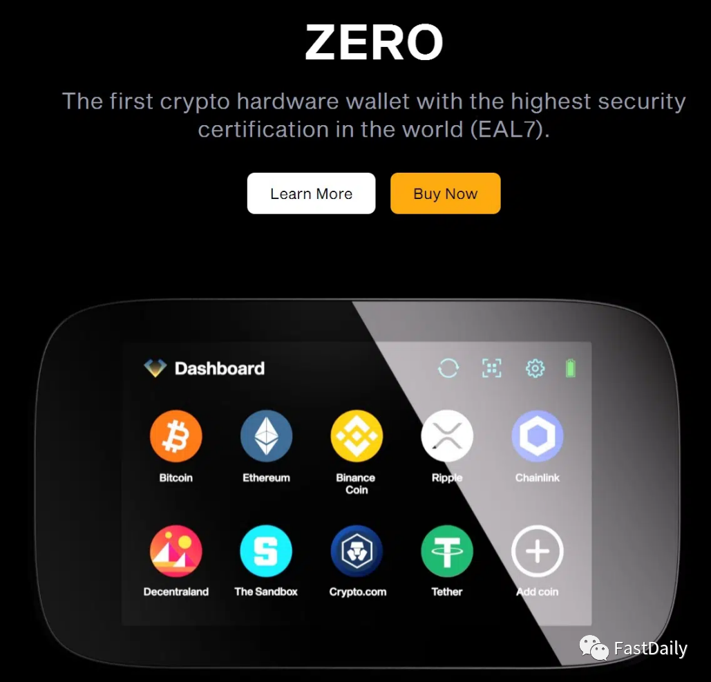 ZERO是世界上唯一通过EAL7认证的硬件钱包