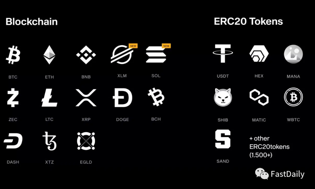 由于该产品相当新,资产支持不是很好。在撰写本文时,尽管ERC20 token支持良好,支持了其他1500个以太坊token,但只有13个不同的区块链被支持。下面的图片显示了支持的内容: