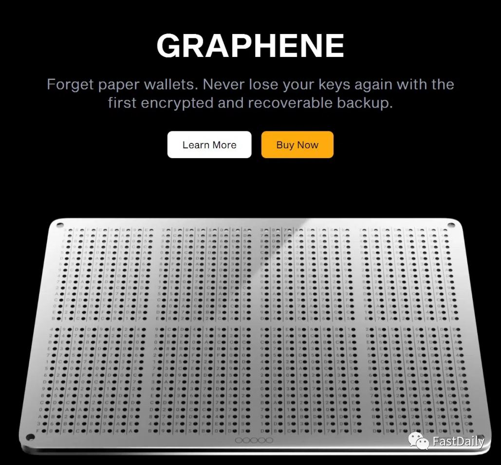 请注意,GRAPHENE产品是可选的,需要额外付费。对于不想在一大块金属上保护私钥的用户来说,钱包还配有一张纸,可以通过写下24字的助记符短语,以传统的方式备份私钥。