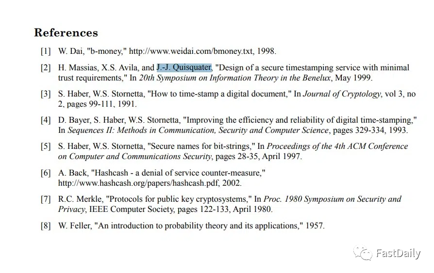 Jean Jacques被中本聪比特币2009年白皮书中的第二个参考文献引用。