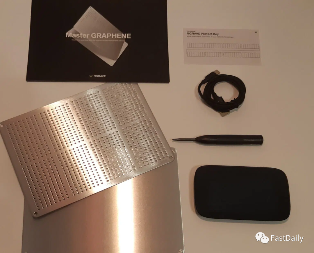 配备2个GRAPHENE金属板和金属打孔器,以确保NGRAVE Perfect Key的安全