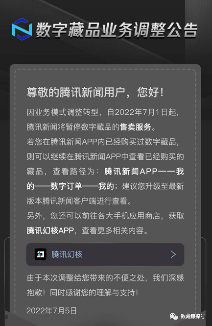 腾讯新闻业务模式调整,腾讯新闻app内的数字藏品板块直接被砍掉了。近期数藏圈变化好大,回归后需要慢慢适应下。