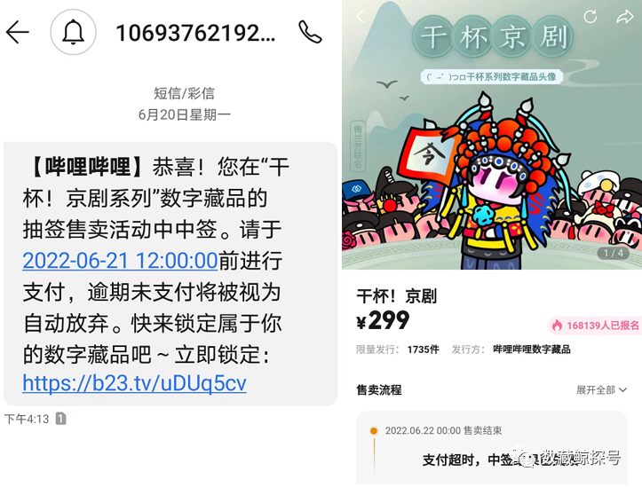 由于平日抢购预约藏品都是用的备用机,短信通知没有及时关注,逾期未支付自动放弃了购买资格。