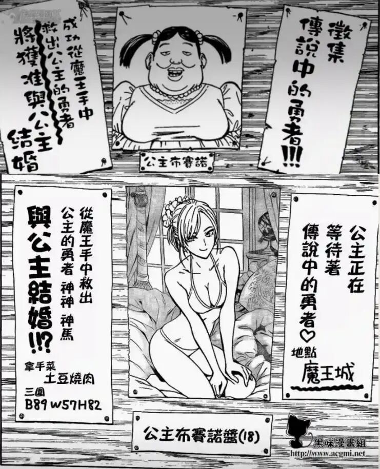 在短篇漫画《怒涛的勇者们》中,他沿着魔王抢走公主,勇者打败魔王拯救公主的思路,却写了个因为公主太丑,所以没有勇者愿意救援的故事。
