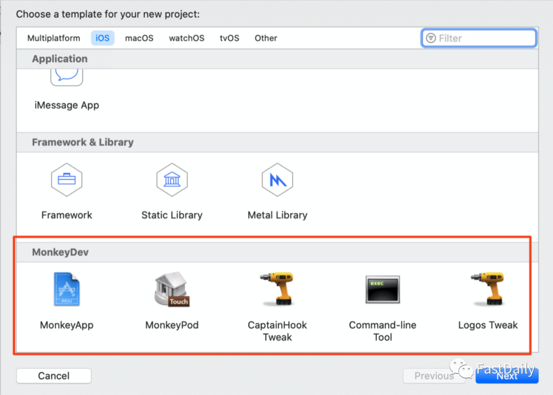 https://github.com/AloneMonkey/MonkeyDev-Xcode-Templates 使其在这些后门的开发周期中完全集成到 Xcode!