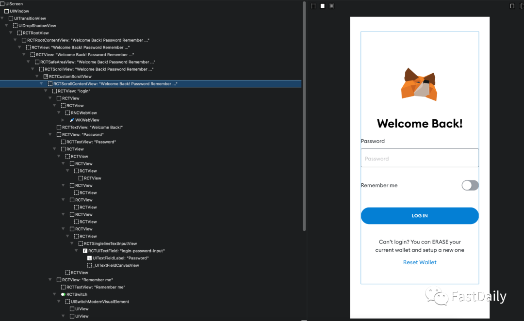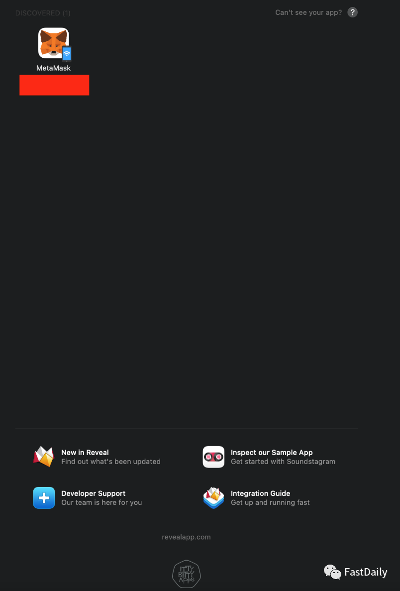 安装在后门 metamask ios 应用上的 Reveal 框架
