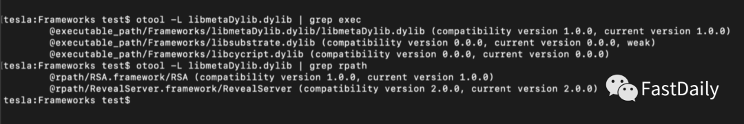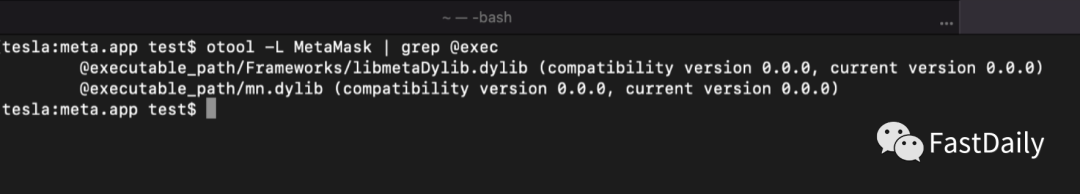 于是我开始查看MetaMask编译的Mach-O文件,发现有两个注入的.dylibs。