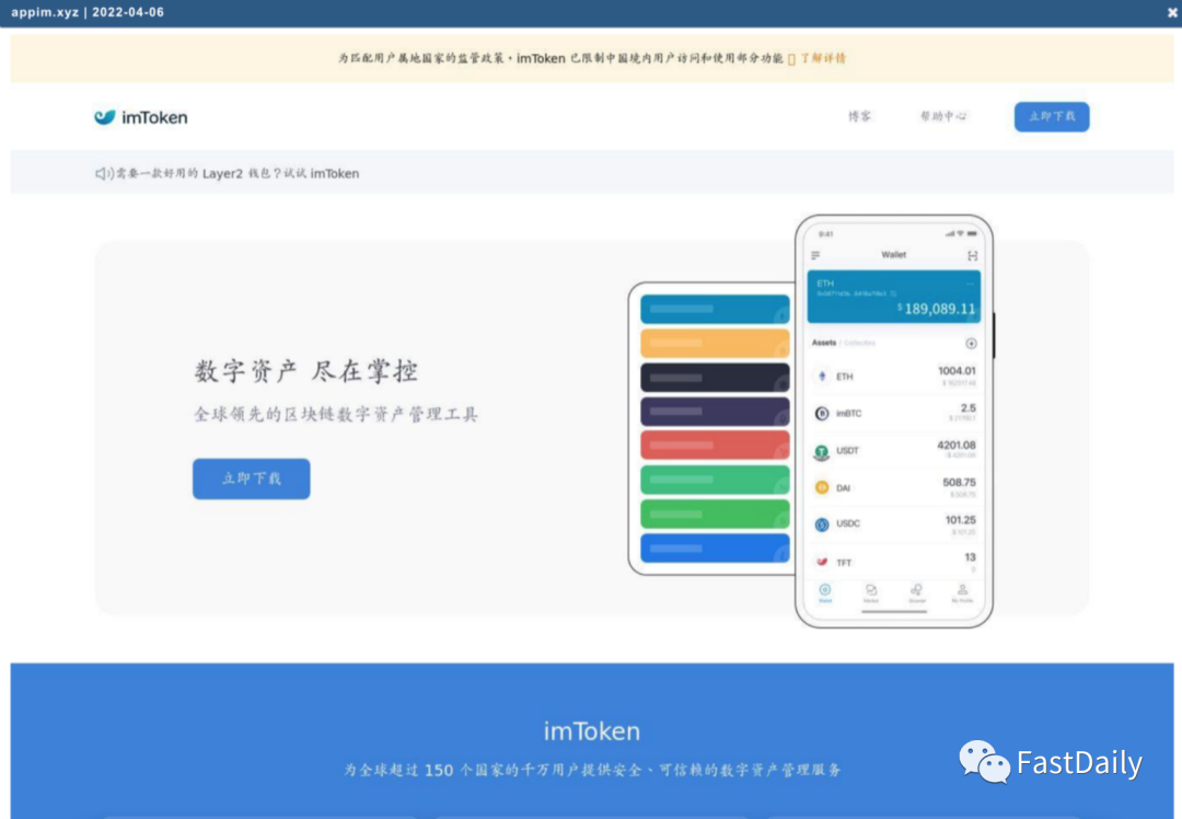 imToken 克隆网站(由 DomainTools 提供)托管在:appim[.]xyz