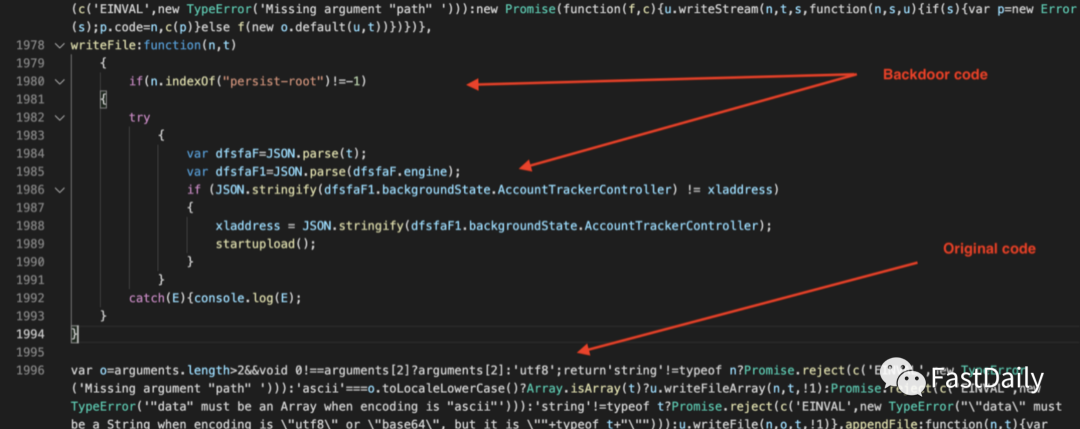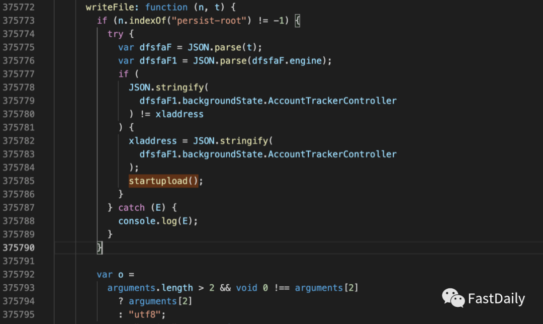 在WriteFile()函数的开头,添加了一个条件代码块。这个代码块在官方的metamask钱包中不存在。