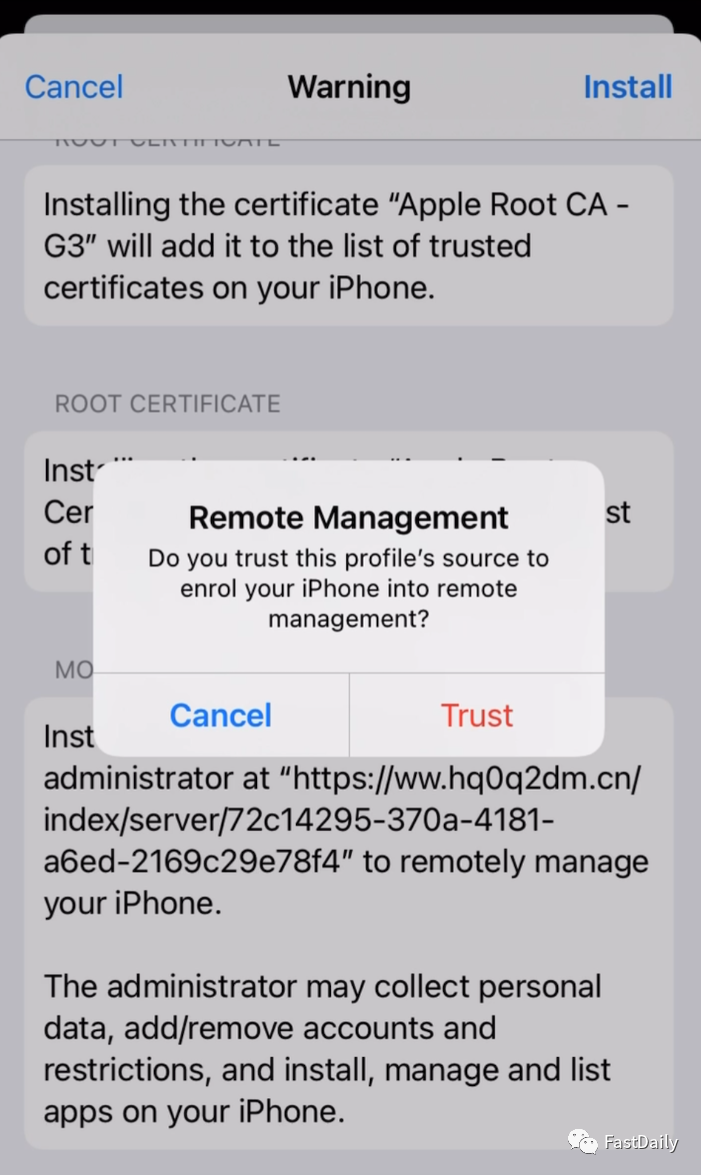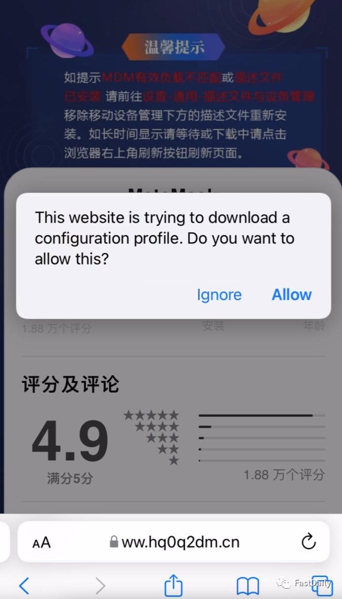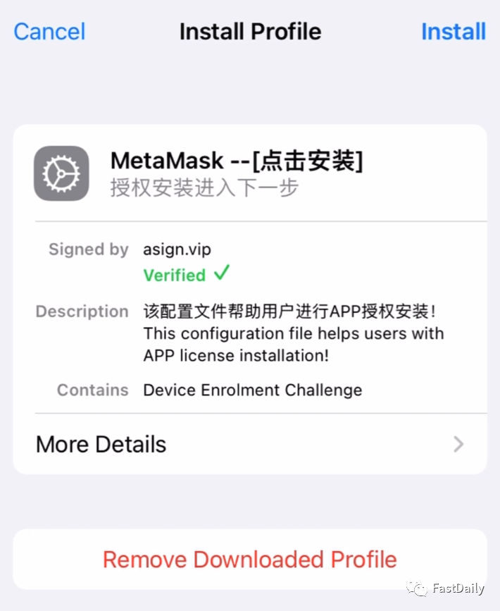 永远不要在你的iPhone上安装或接受随机配置配置文件,正如你在这篇博文中所看到的,它们允许下载未经验证的软件,有可能窃取你的加密货币。