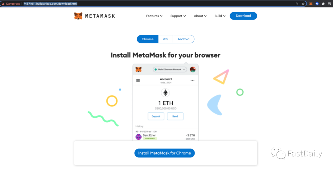 克隆 Metamask 网站,托管在:https://74871011[.]huliqianbao[.]com/download.html