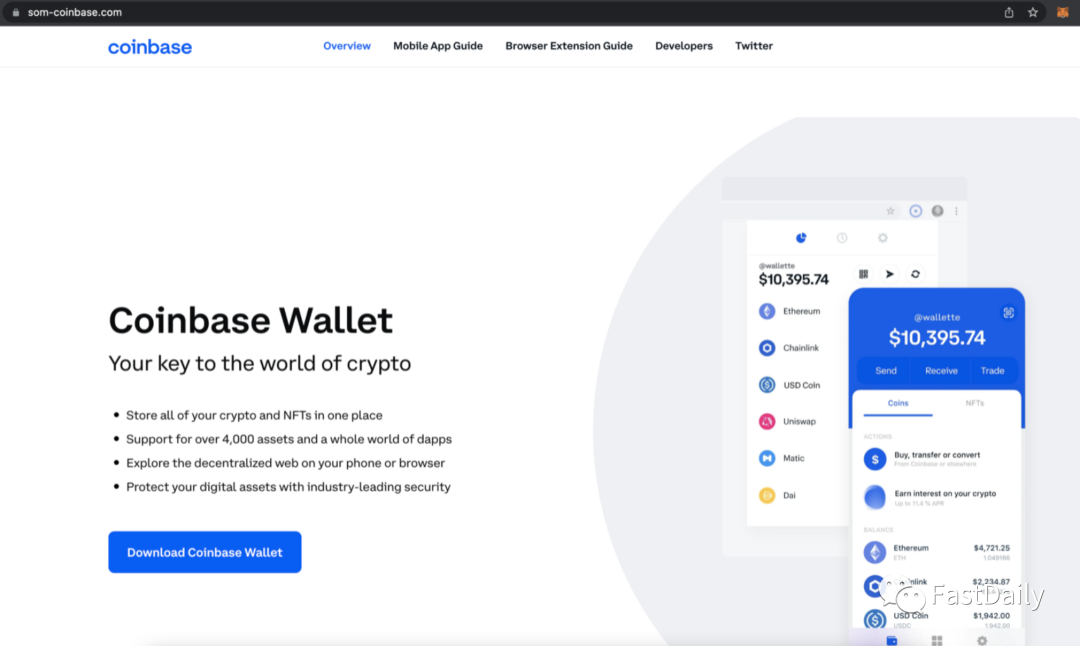 克隆的 Coinbase 钱包网站托管在 som-coinbase[.]com