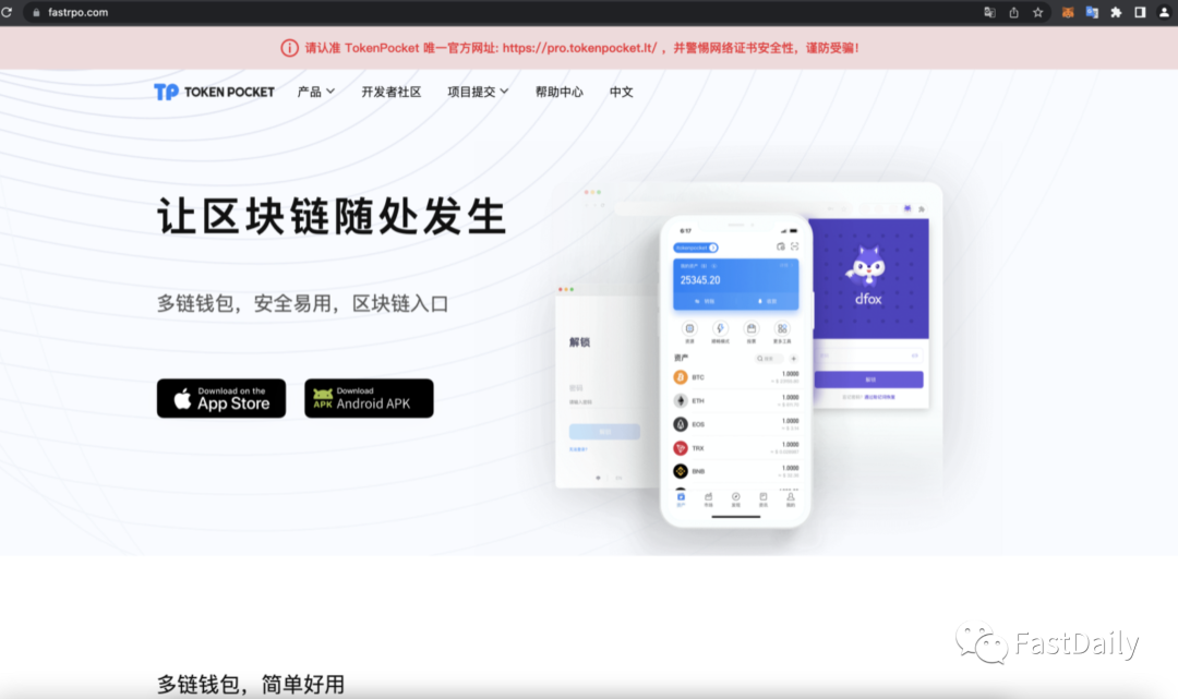 托管在 fastrpo[.]com 上的克隆token pocket网站