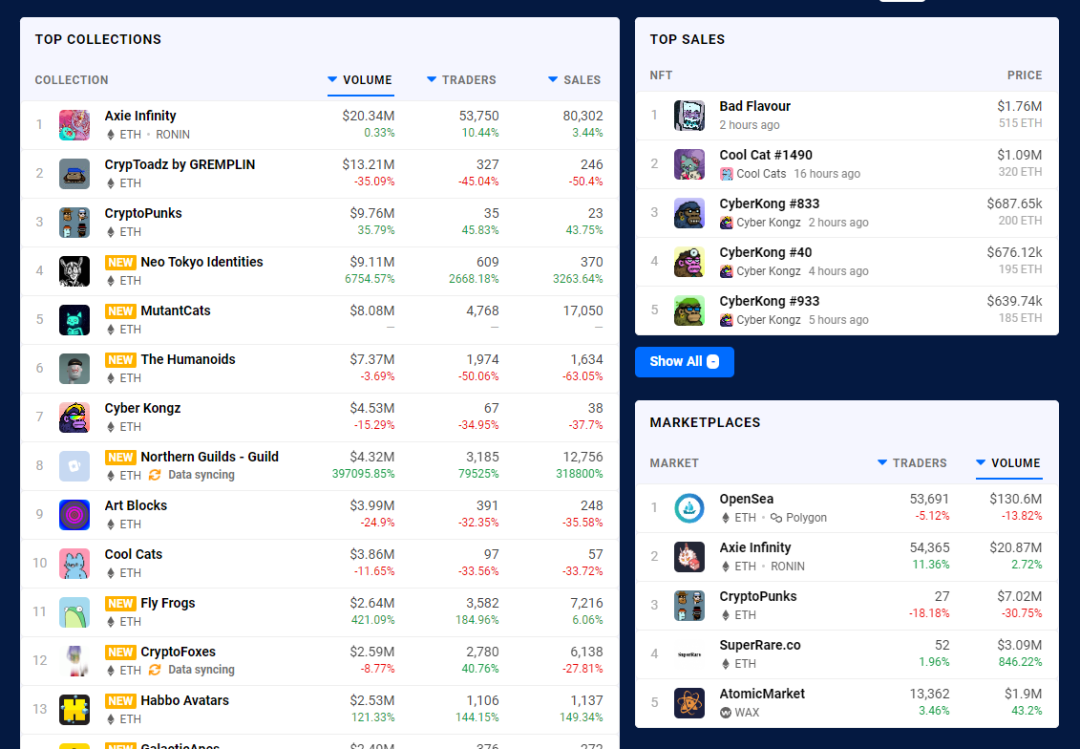 根据DappRadar数据显示,过去24小时中,最昂贵的NFT销售记录,有3个均被CyberKong占据,而 Genesis CyberKongz (3月1日发布的首批1000个CyberKongz,目前CyberKongz总量为3,852)目前的地板价已经突破100枚以太坊,直逼CryptoPunks。仍然是一个简单的像素 PFP 项目,这次甚至没有任何“早期”,“古董”,“里程碑”的标签,那它凭何如此火爆?