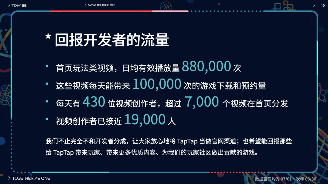 以「Together as One」为口号,2022 TapTap 开发者沙龙 (TDW) 今明两天在线上举行。