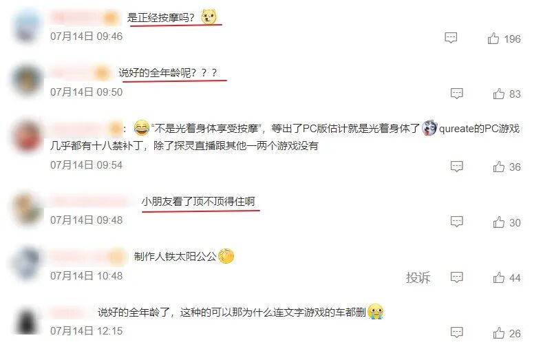 这种“在太岁头上动土”的既视感,加上“在Switch上玩黄油”的背德感,很快让评论区出现了快活的空气“是正经按摩吗”“说好的全年龄呢”“小朋友看了顶不顶得住啊”。