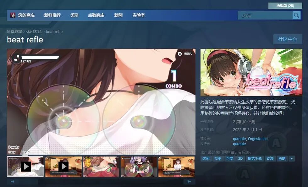 先不把话题方向和时间线拉远,还是围绕《按摩狂》的制作公司qureate聊聊。这家2018年成立的Galgame公司,以制作擦边球小黄油为主业,主要面向PC端用户,在Steam发售一些打了补丁才是完全体的作品,但《按摩狂》并非它们在Switch上的第一次尝试,此前他们就在eShop推出过还算话题作的《决斗公主》。